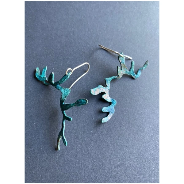 Ingvild Reinton Felis har master i medium- og materialbasert kunst ved Kunsthøyskolen i Oslo og bor på Helgøya. Hun er inspirert av trær, elver og fjell og former vakre smykker fra kobberplater.
