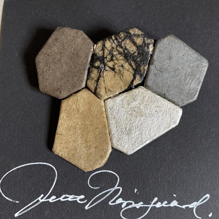 Hun arbeider med kunsthåndverk – smykker, skulpturer, skåler og bileder og bruker mange slags papir i kombinasjon med andre materialer.