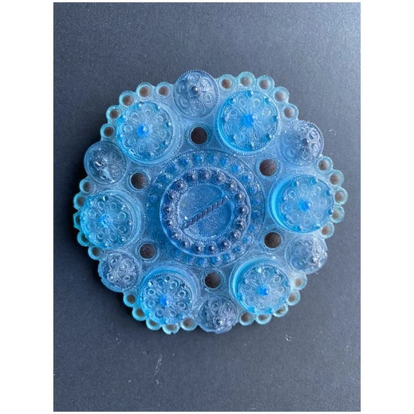 Siri Bergløff Berrefjord, født i Oslo og oppvokst i Hurdal, har sin inspirasjon fra tradisjonelt håndarbeid etter å ha jobbet som fotograf for Blomqvist. Bunadsplast er ikke ment som en erstatning for bunadssølv, men kanskje heller for de som ikke har bunad. En fusjon av teknikk, uttrykk og materiale.