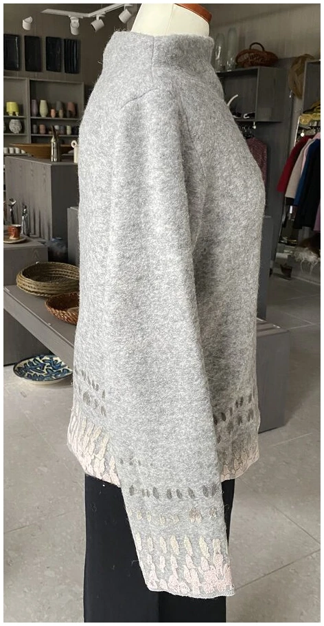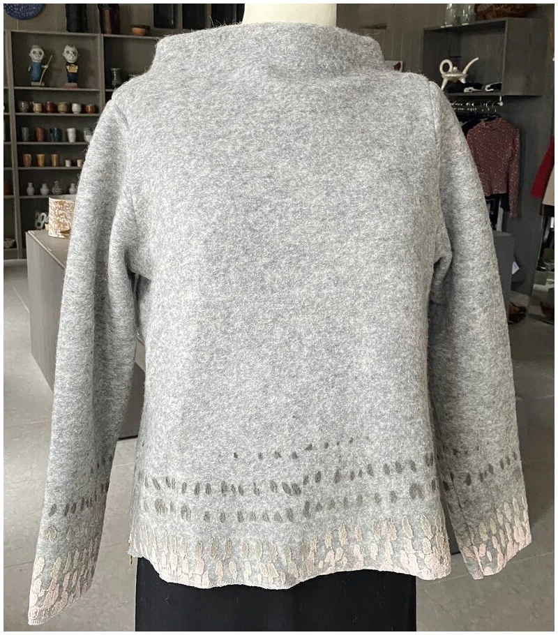 Håndlaget og håndtrykket genser i ull, str S