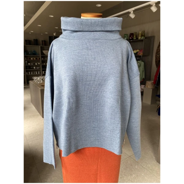 Kort genser med glidelås i sidene i fin ullkvalitet