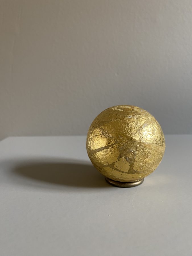 Trekule dekket med papir og bladgull