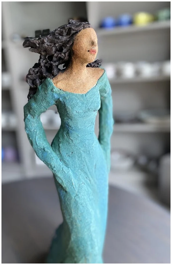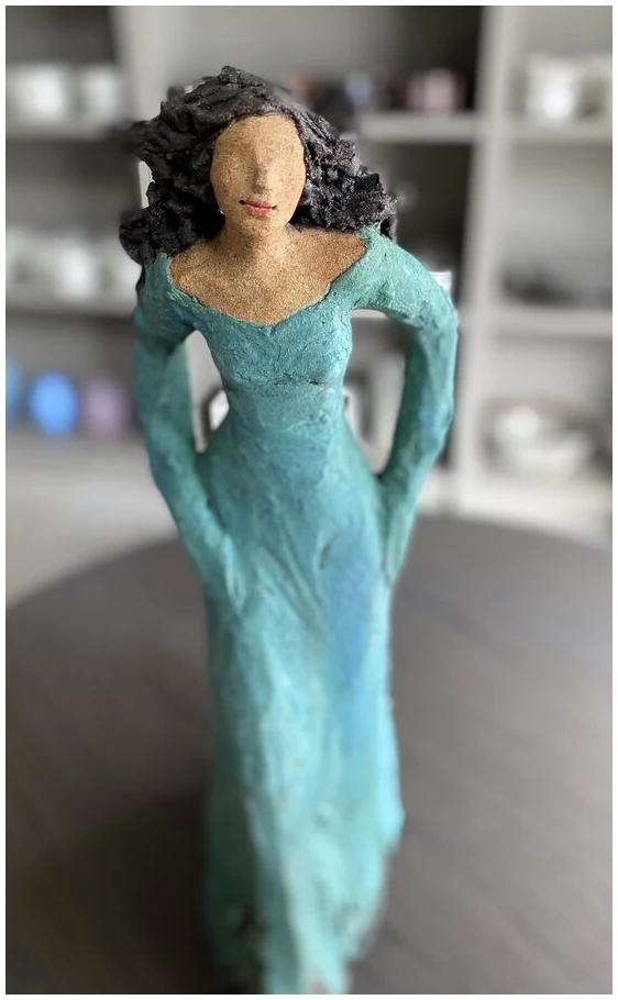Håndmodellert “gående” keramikkdame