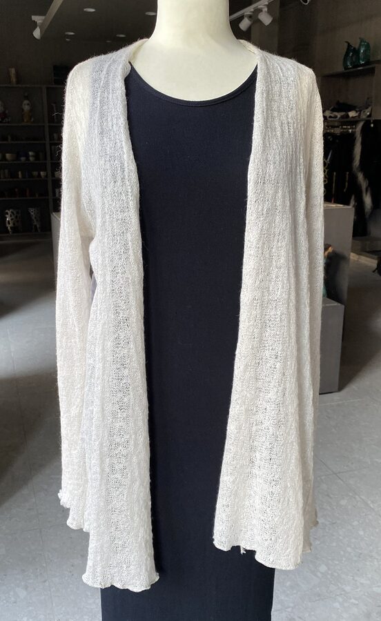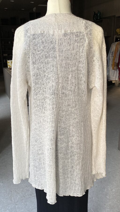 Strikket åpen jakke i kroppsvennlig fasong med vakker rygg.