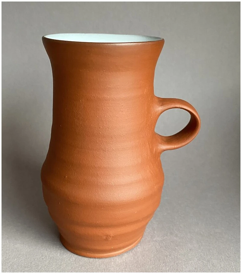 Dreiet og hånddekorert kopp i leirgods