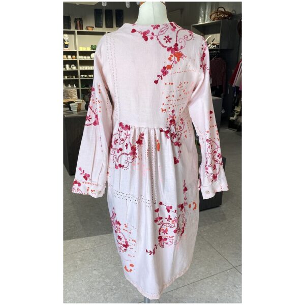 Redesignet kjole med lommer foran, trykk og broderi