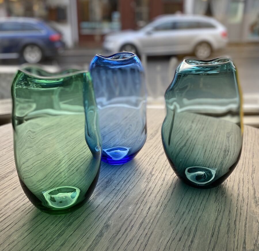 Hun både blåser og sliper glass, og hennes produksjon spenner seg fra funksjonelle til skulpturelle arbeider. Formgivning og håndverket er essensielt i Karis virke.