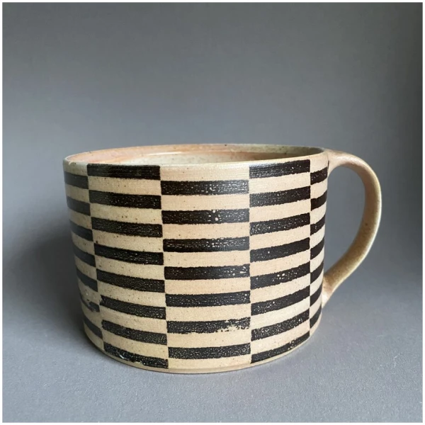 Camilla Kaupang, født 1975, bor og arbeider i Larvik. Hun har utdannelse innen arkitektur, er sivilarkitekt og har fagskoleutdanning i keramikk, samt en rekke kurs i vedfyring av keramikk. Hun lager bruksgjenstander i steingods som hun brenner med ved og soda. Forskjellige grunnstoffer gir forskjellig fargeutslag i forbindelse med fyringsprosessen, og Camilla liker å jobbe med serier som formalt hører sammen, men som i sine overflater har slektskap.