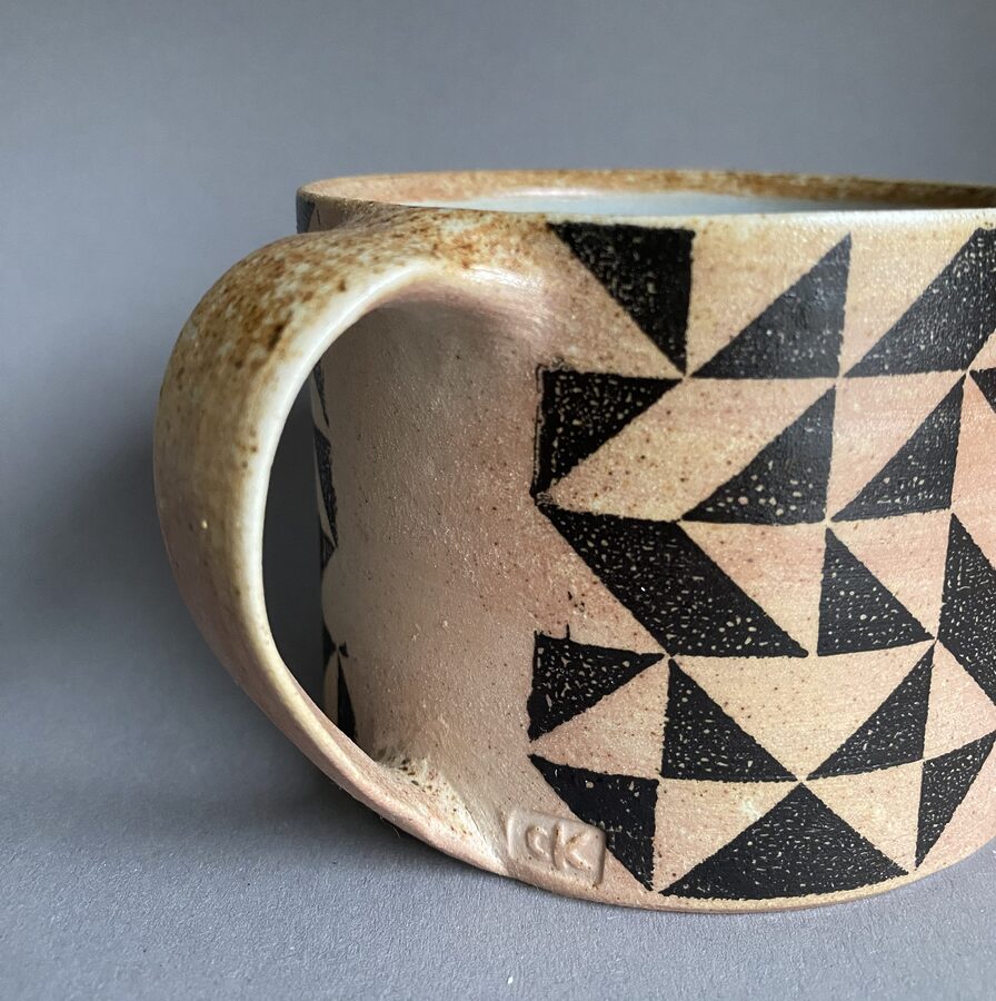 Camilla Kaupang, født 1975, bor og arbeider i Larvik. Hun har utdannelse innen arkitektur, er sivilarkitekt og har fagskoleutdanning i keramikk, samt en rekke kurs i vedfyring av keramikk. Hun lager bruksgjenstander i steingods som hun brenner med ved og soda. Forskjellige grunnstoffer gir forskjellig fargeutslag i forbindelse med fyringsprosessen, og Camilla liker å jobbe med serier som formalt hører sammen, men som i sine overflater har slektskap.