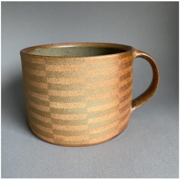 Camilla Kaupang, født 1975, bor og arbeider i Larvik. Hun har utdannelse innen arkitektur, er sivilarkitekt og har fagskoleutdanning i keramikk, samt en rekke kurs i vedfyring av keramikk. Hun lager bruksgjenstander i steingods som hun brenner med ved og soda. Forskjellige grunnstoffer gir forskjellig fargeutslag i forbindelse med fyringsprosessen, og Camilla liker å jobbe med serier som formalt hører sammen, men som i sine overflater har slektskap.