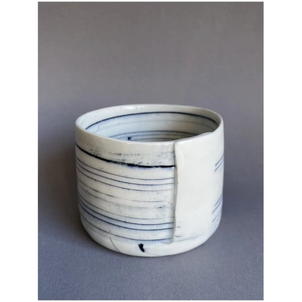 Kopp/beholder laget av innfarget og kjevlet porselen