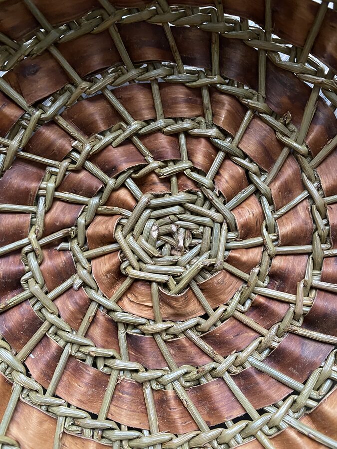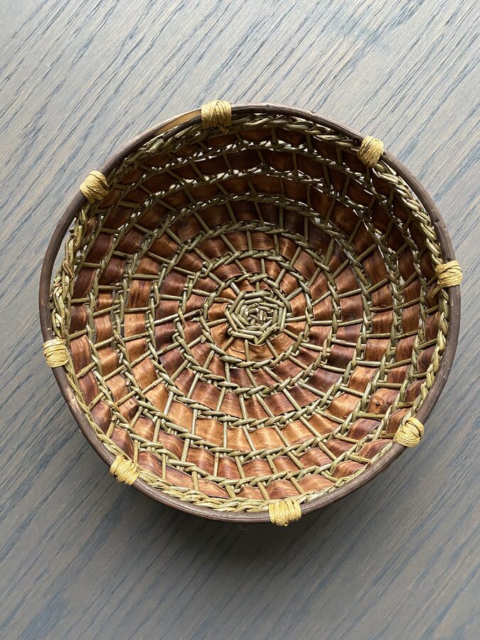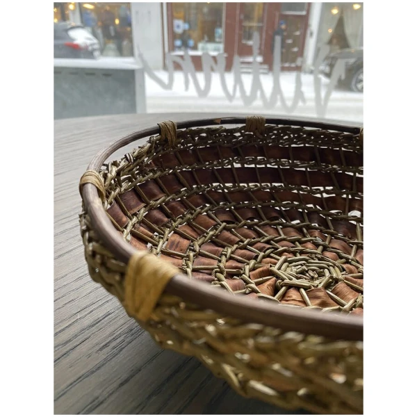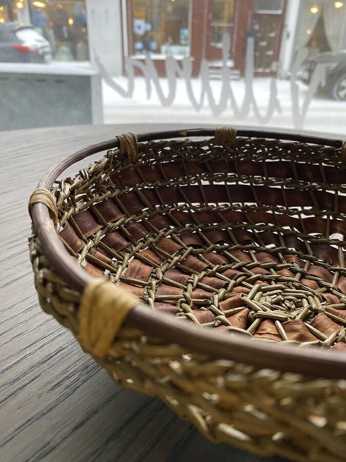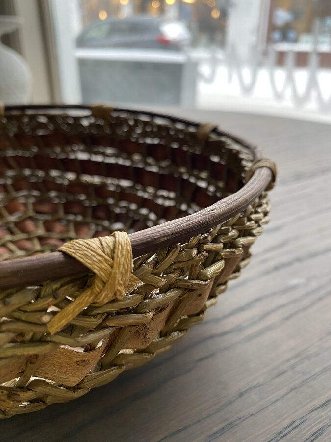 Håndflettet kurv, pil og never