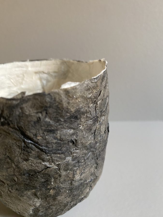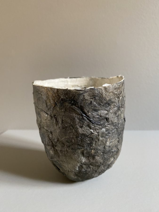 Hun arbeider med kunsthåndverk – smykker, skulpturer, skåler og bileder og bruker mange slags papir i kombinasjon med andre materialer.