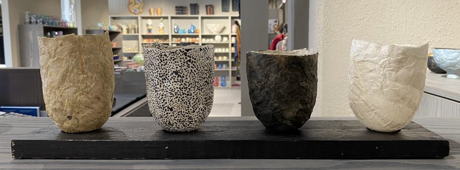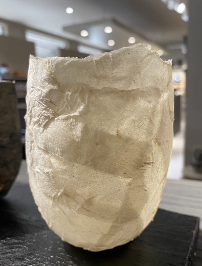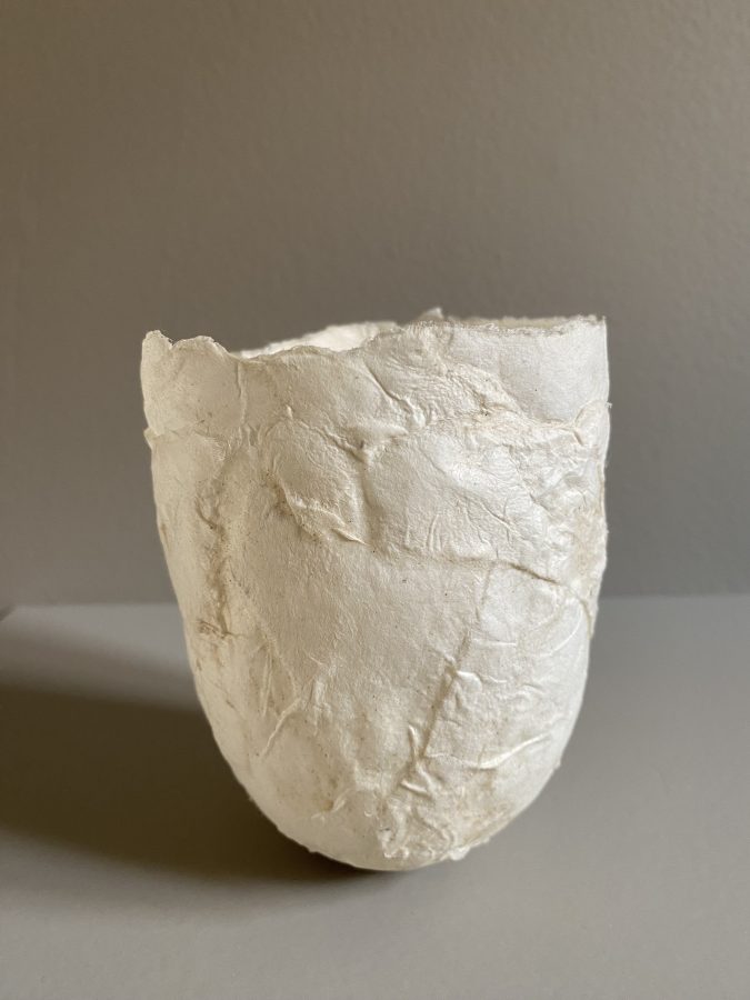 Hun arbeider med kunsthåndverk – smykker, skulpturer, skåler og bileder og bruker mange slags papir i kombinasjon med andre materialer.