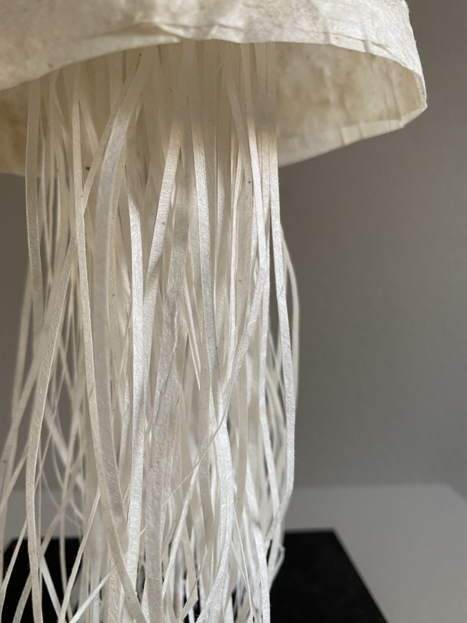 Hun arbeider med kunsthåndverk – smykker, skulpturer, skåler og bileder og bruker mange slags papir i kombinasjon med andre materialer.