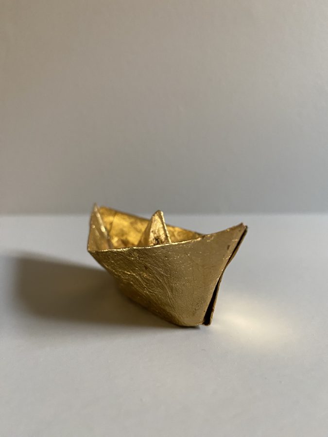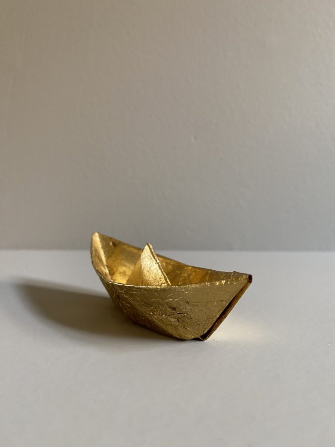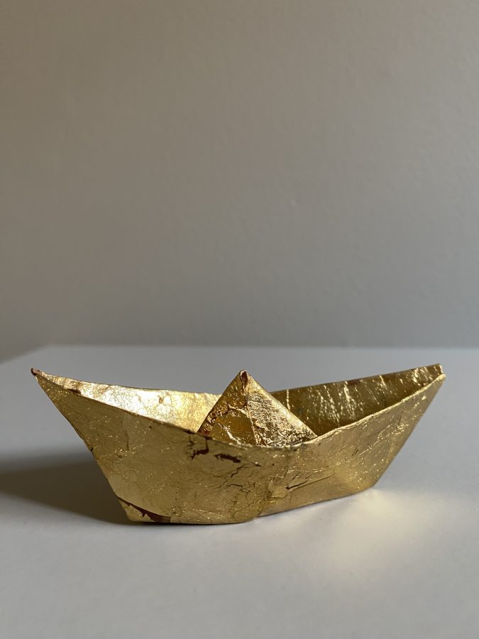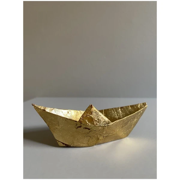 Båt i brettet papir, dekorert med bladgull