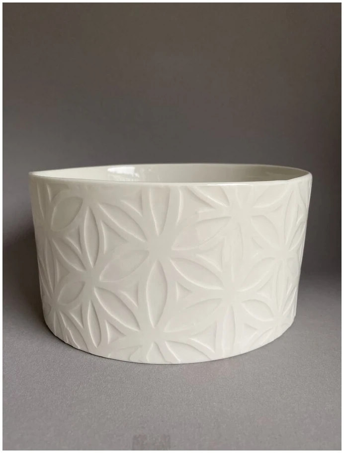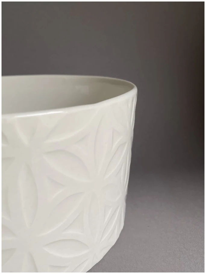 Bolle til servering i støpt porselen med hånddekorert mønster