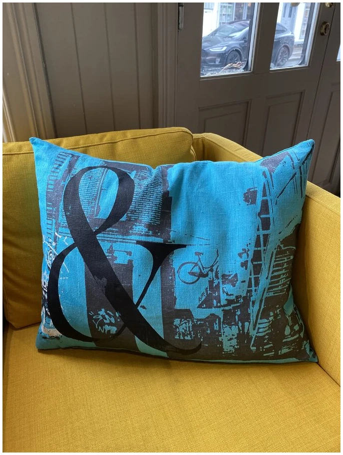 Pute med håndtrykket motiv
