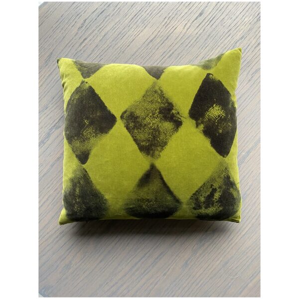 Mosegrønn velourpute med håndtrykket motiv