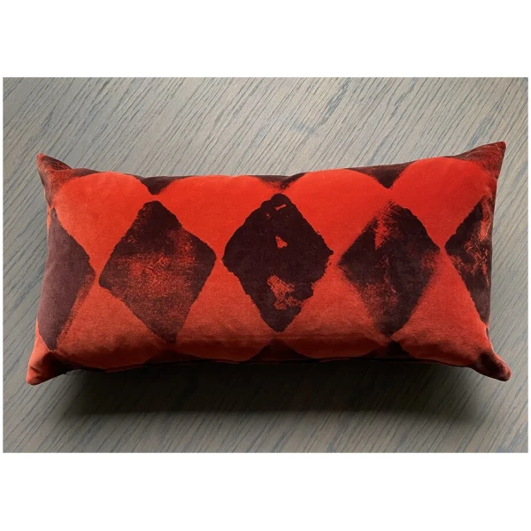 Rødorange velourpute med håndtrykket motiv