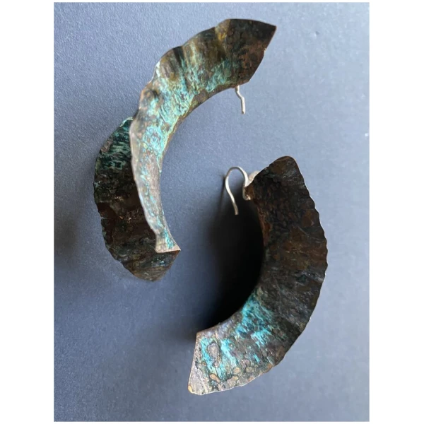 Ingvild Reinton Felis har master i medium- og materialbasert kunst ved Kunsthøyskolen i Oslo og bor på Helgøya. Hun er inspirert av trær, elver og fjell og former vakre smykker fra kobberplater.