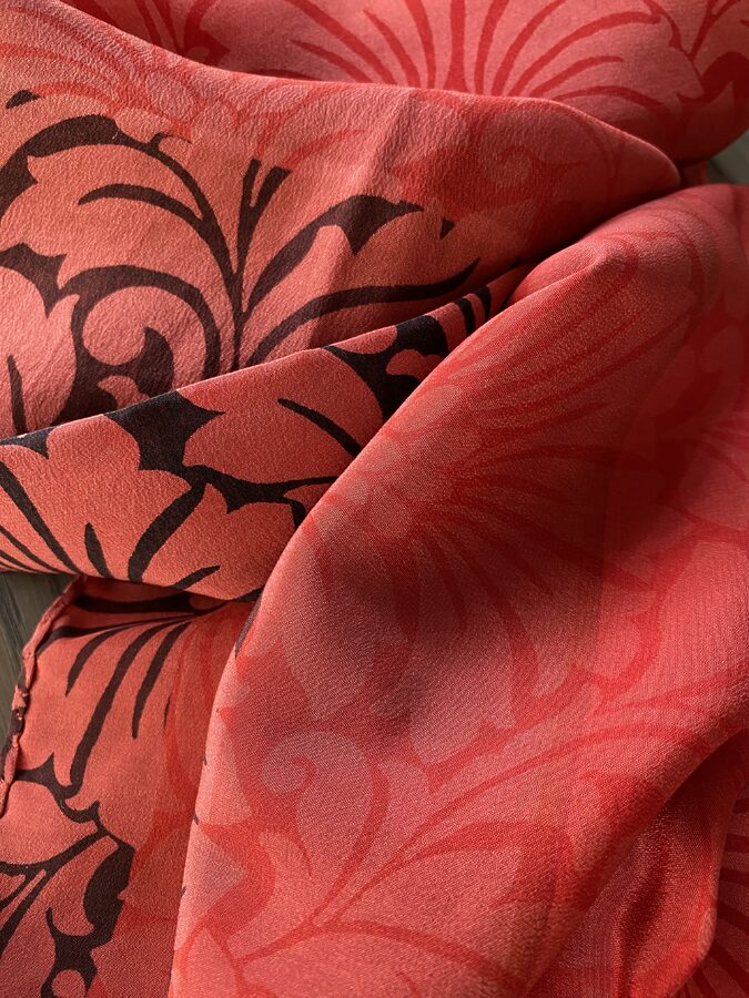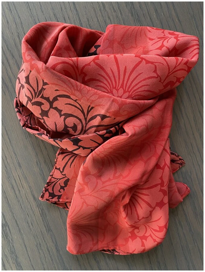 De to produksjonene er helt forskjellige, den eneste likheten er at hun i begge tilfeller arbeider med silketrykk. De store arbeidene utfører Anne Line på lin, mens skjerf og sjal trykkes på ull og silke.