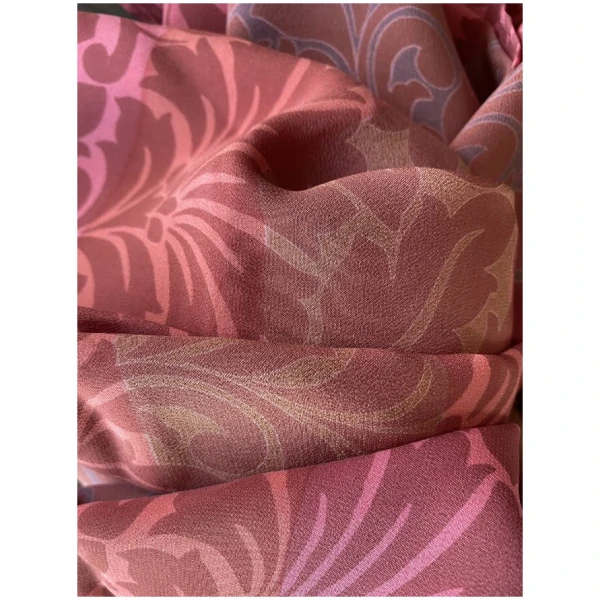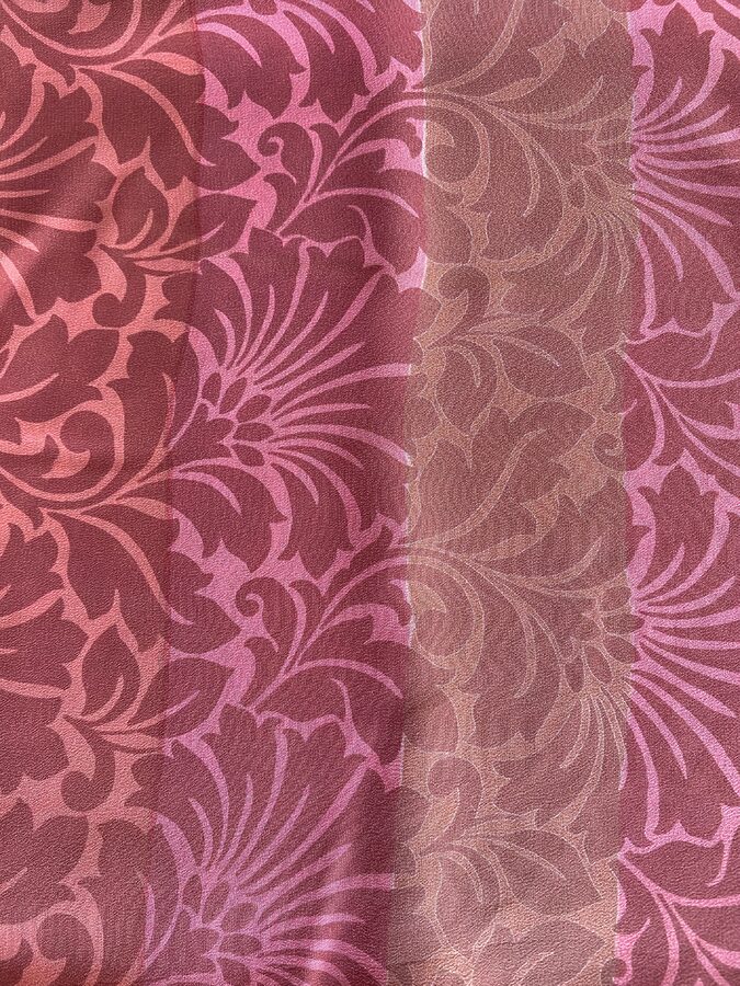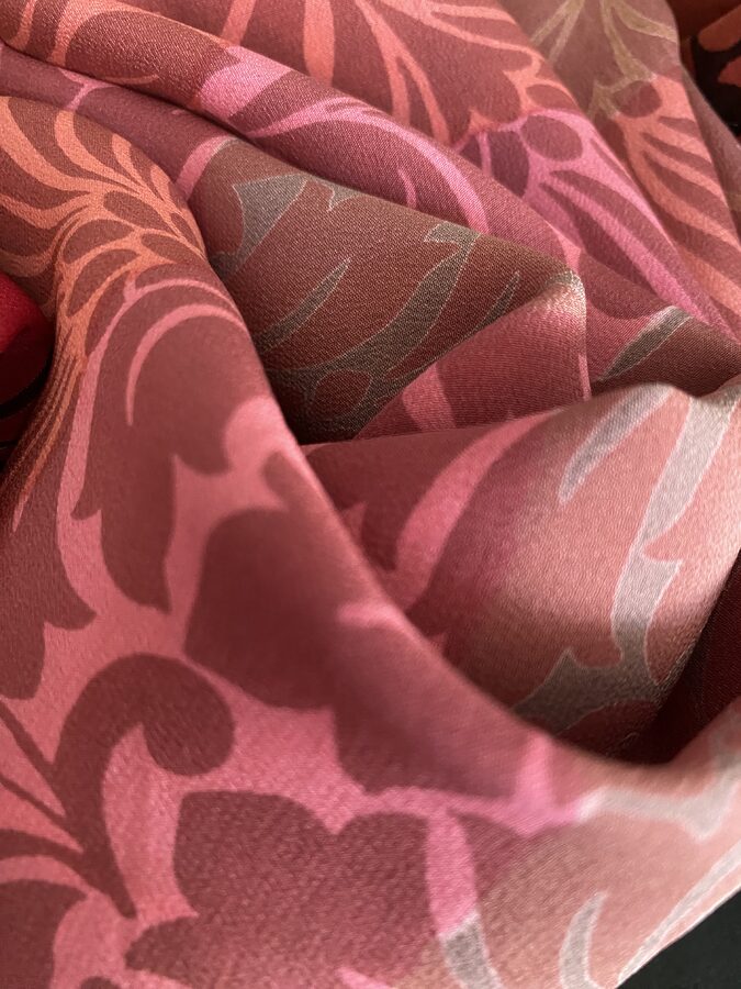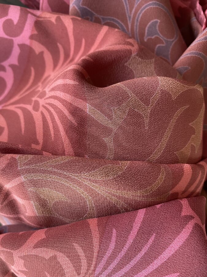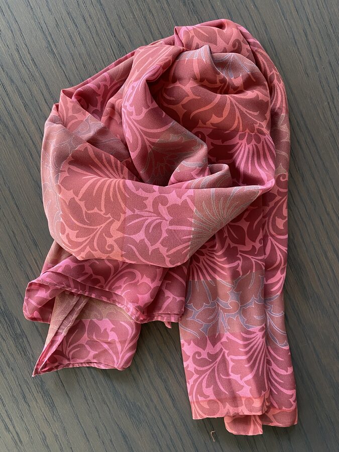 De to produksjonene er helt forskjellige, den eneste likheten er at hun i begge tilfeller arbeider med silketrykk. De store arbeidene utfører Anne Line på lin, mens skjerf og sjal trykkes på ull og silke.