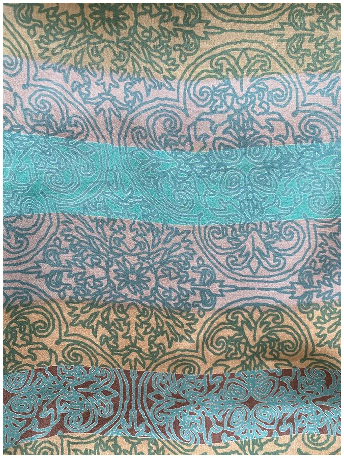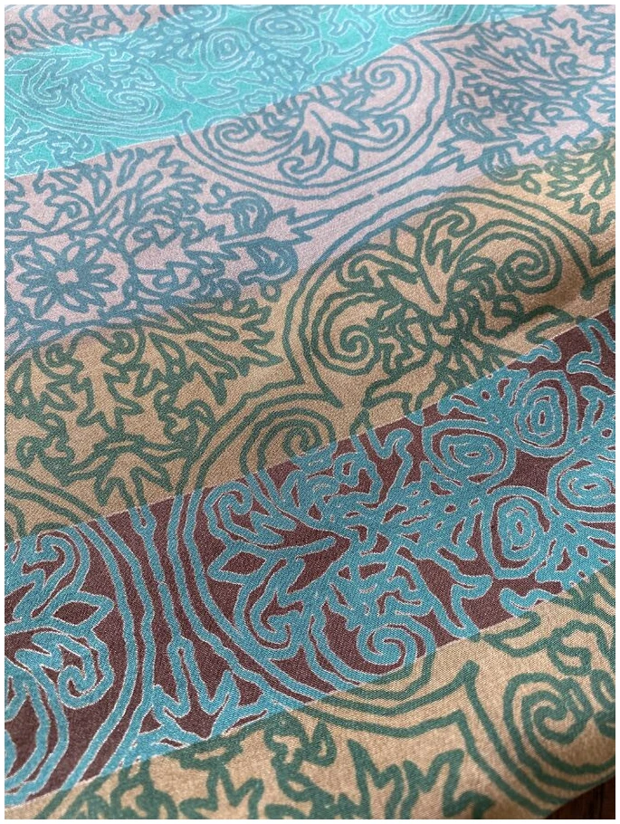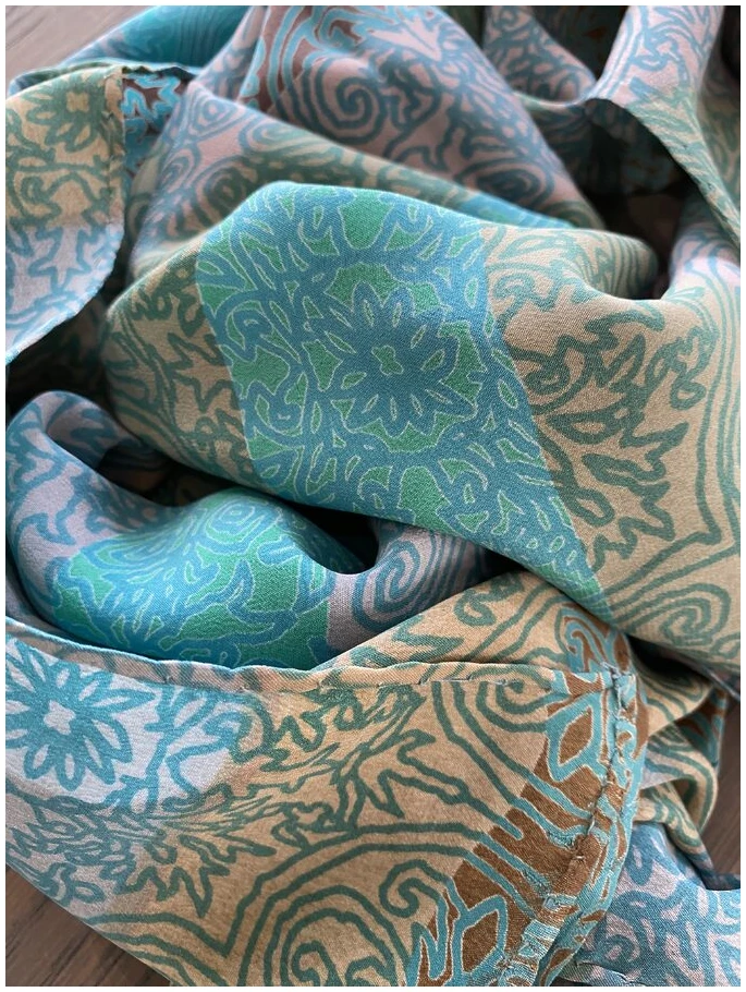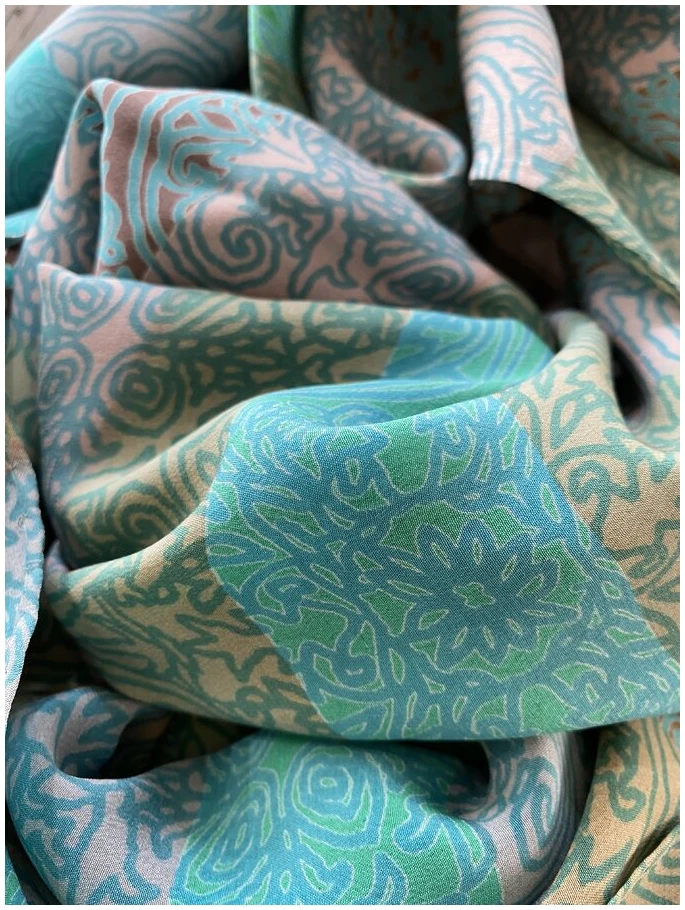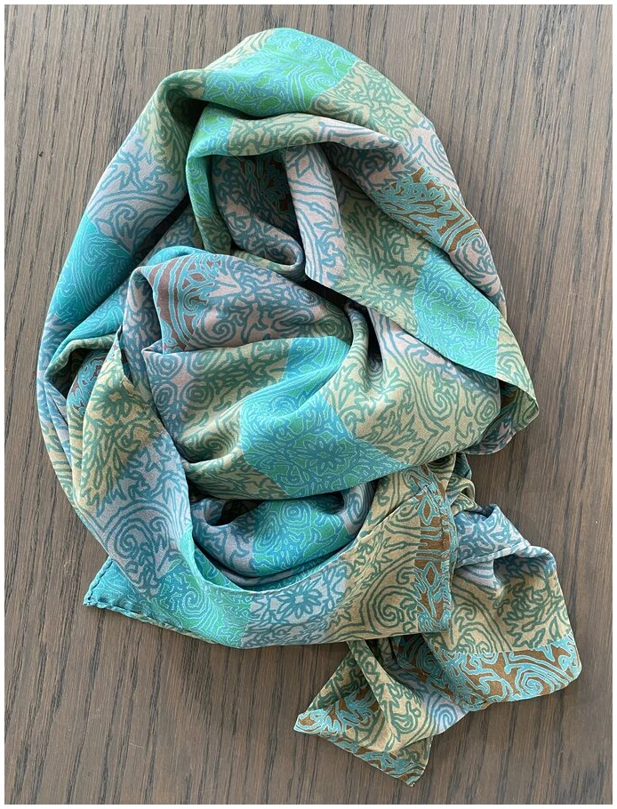 De to produksjonene er helt forskjellige, den eneste likheten er at hun i begge tilfeller arbeider med silketrykk. De store arbeidene utfører Anne Line på lin, mens skjerf og sjal trykkes på ull og silke.
