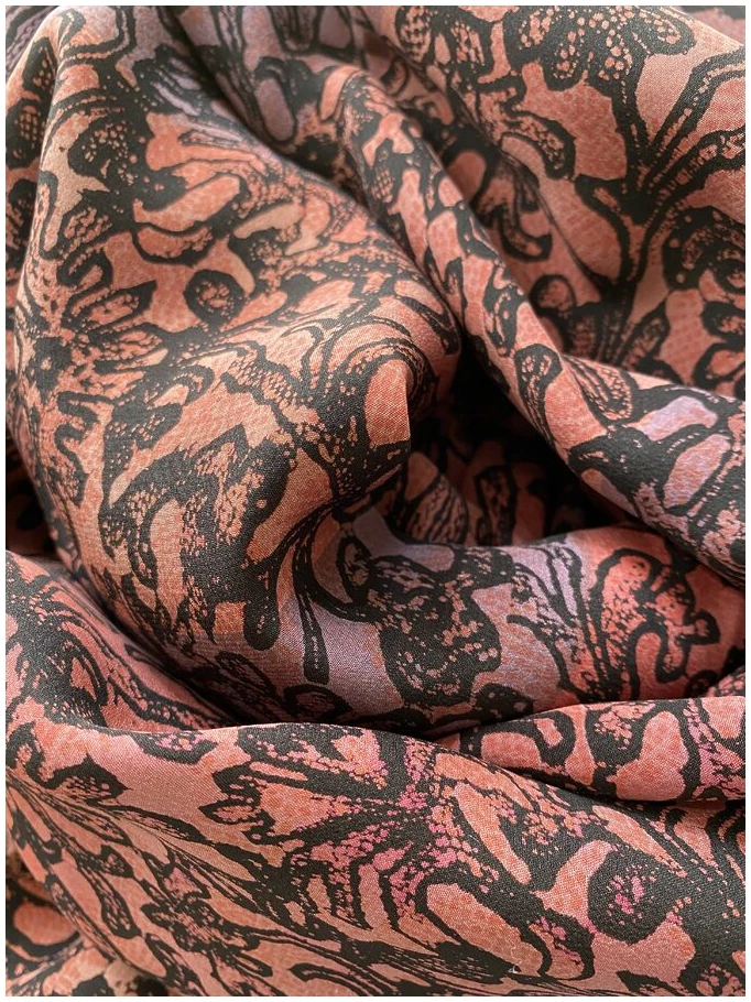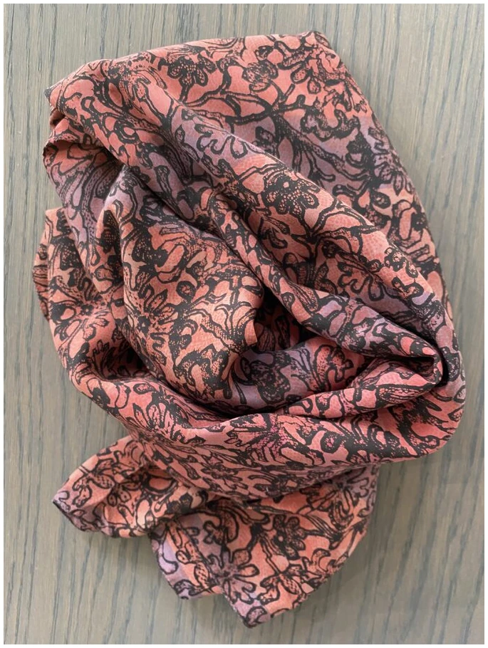 De to produksjonene er helt forskjellige, den eneste likheten er at hun i begge tilfeller arbeider med silketrykk. De store arbeidene utfører Anne Line på lin, mens skjerf og sjal trykkes på ull og silke.