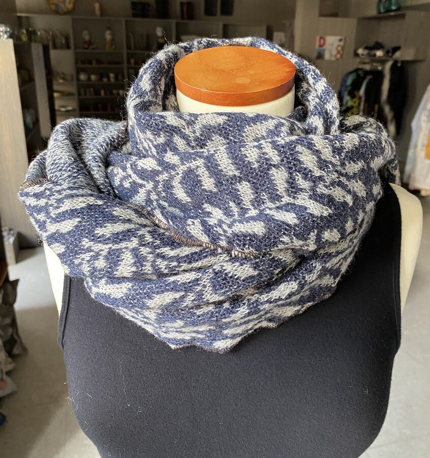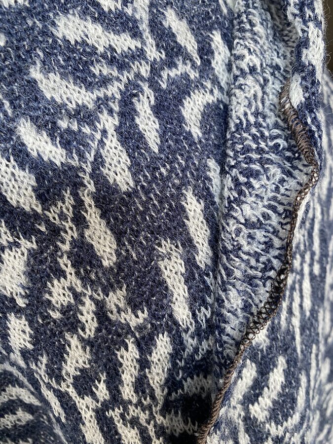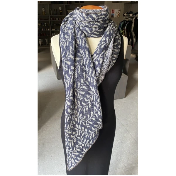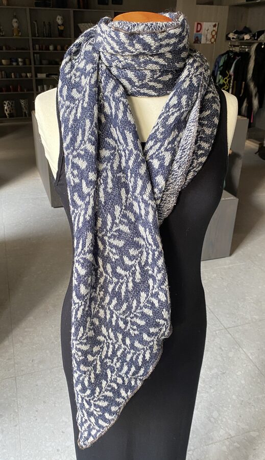 Lisbet på Gotland strikker og Pernilla behandler og syr sjalene.
