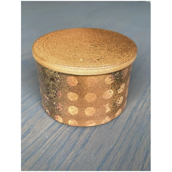 Dreiet og vedfyrt krukke til oppbevaring av smør.