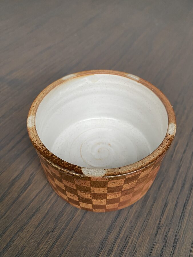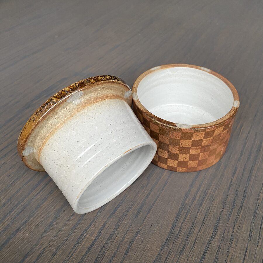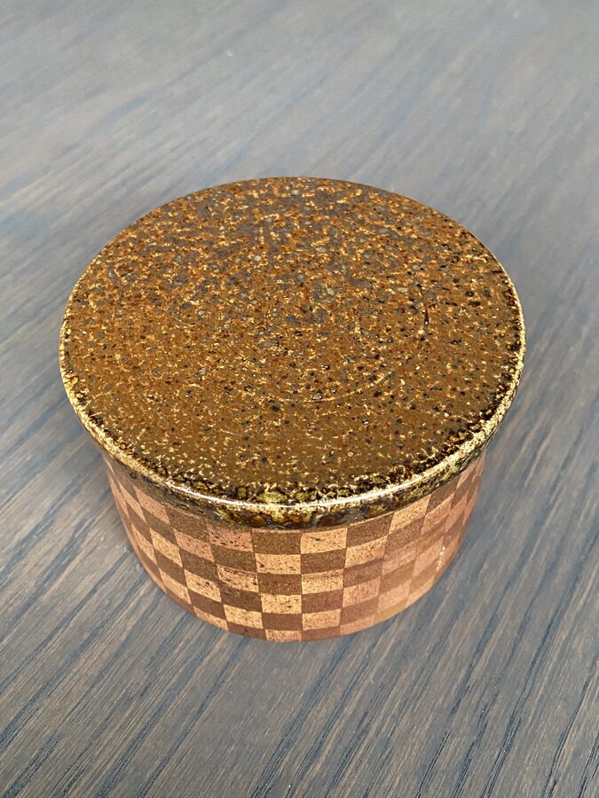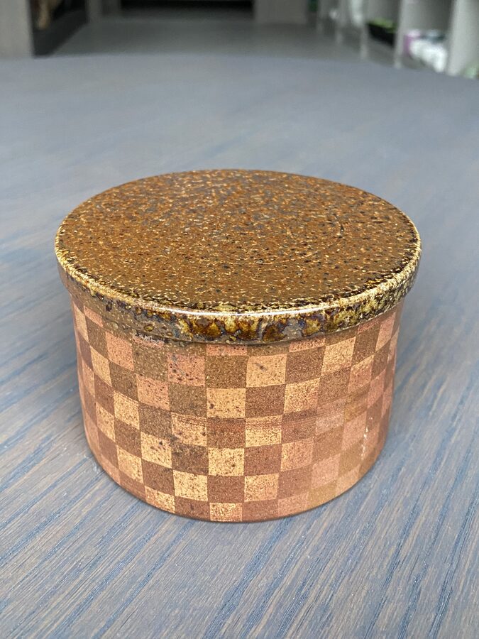 Dreiet og vedfyrt krukke til oppbevaring av smør.