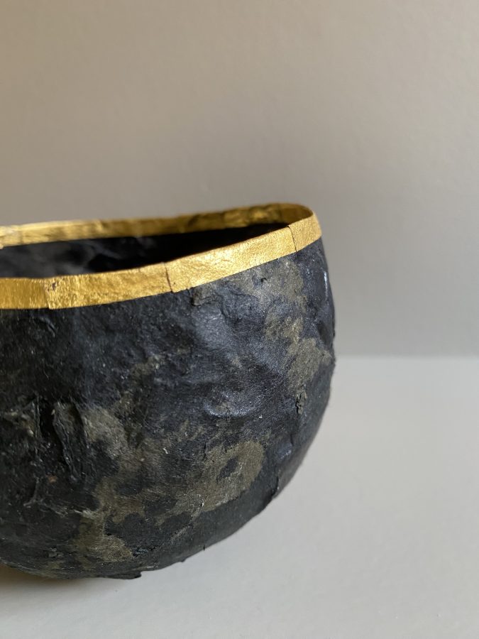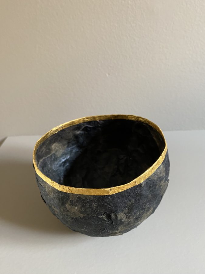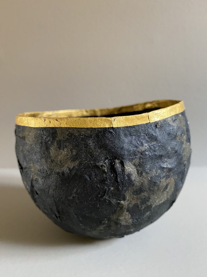Hun arbeider med kunsthåndverk – smykker, skulpturer, skåler og bileder og bruker mange slags papir i kombinasjon med andre materialer.