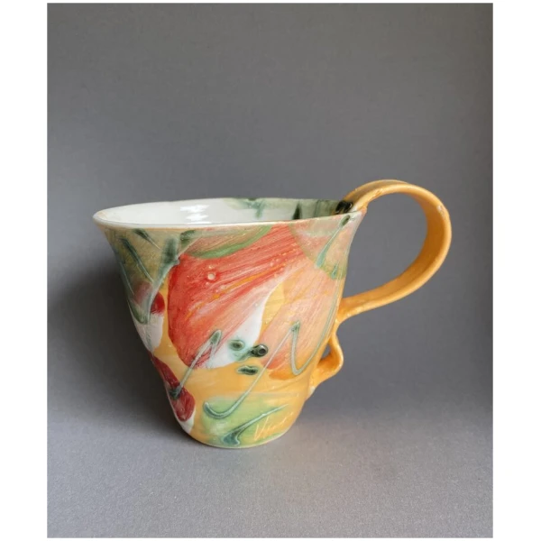 Hånddreiet og hånddekorert kopp i porselen