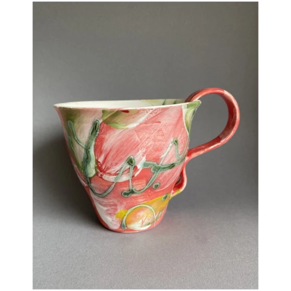 Hånddreiet og hånddekorert kopp i porselen