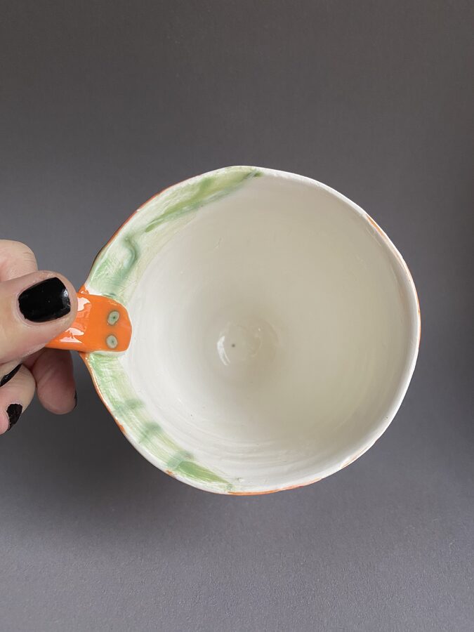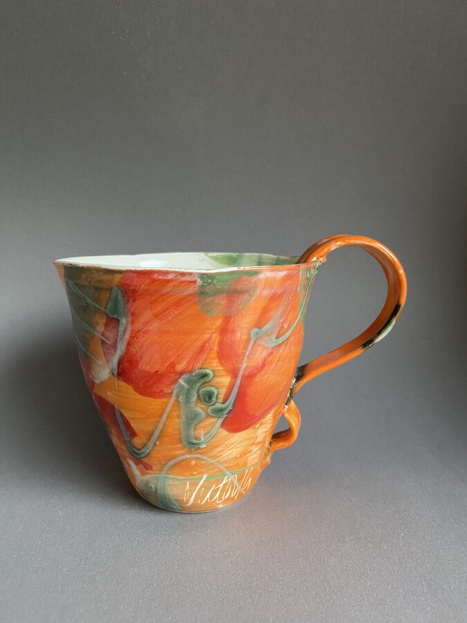 Hånddreiet og hånddekorert kopp i porselen