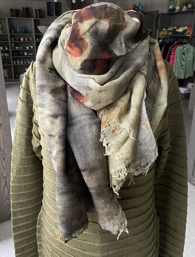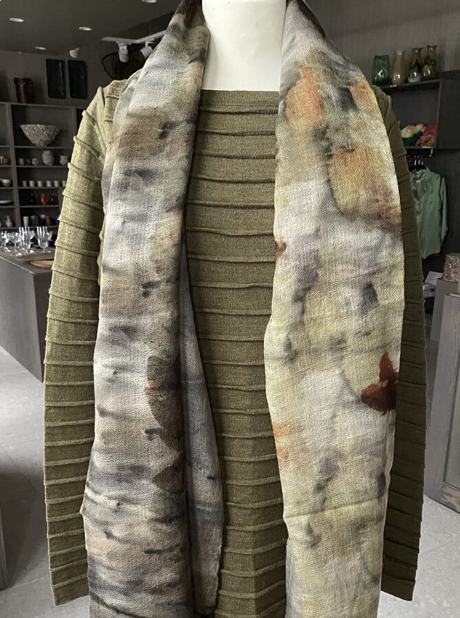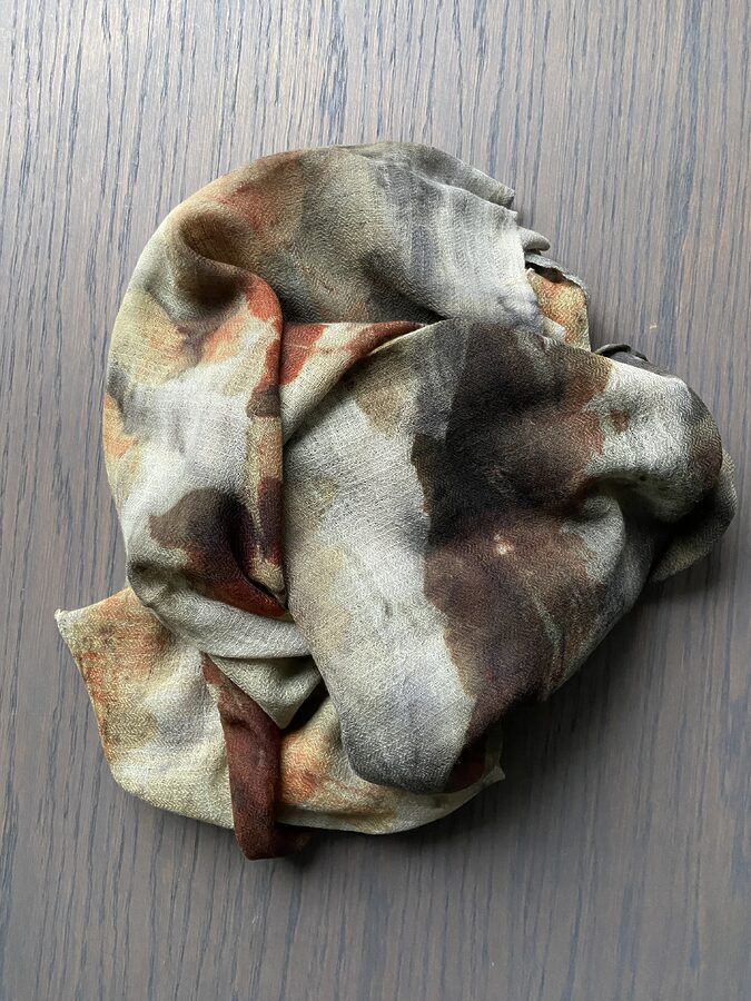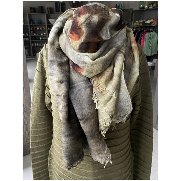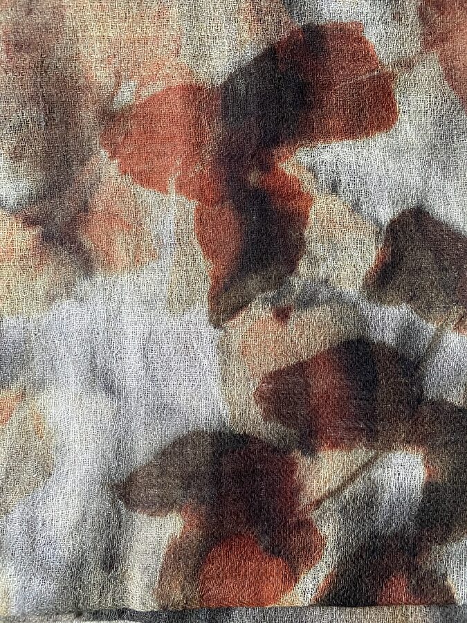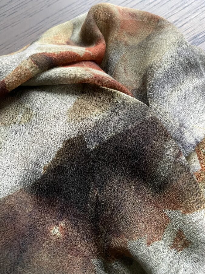 Sjal i ull med botanisk trykk