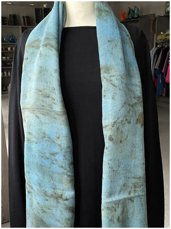 Sjal i ull med botanisk trykk