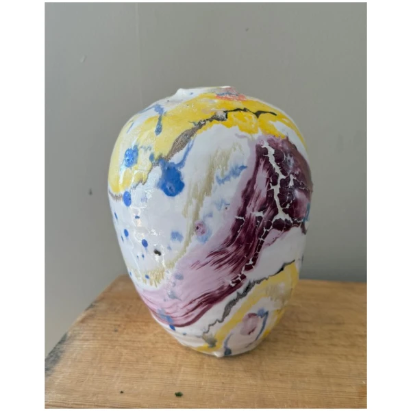 Med en ekte kunstnerisk ånd eksperimenterer Gunvor fritt med materialer, farger, former og metoder. Dypt inspirert av den ville naturen rundt seg, innlemmer hun ofte lokalt hentet leire, sand og stein i arbeidet sitt.
